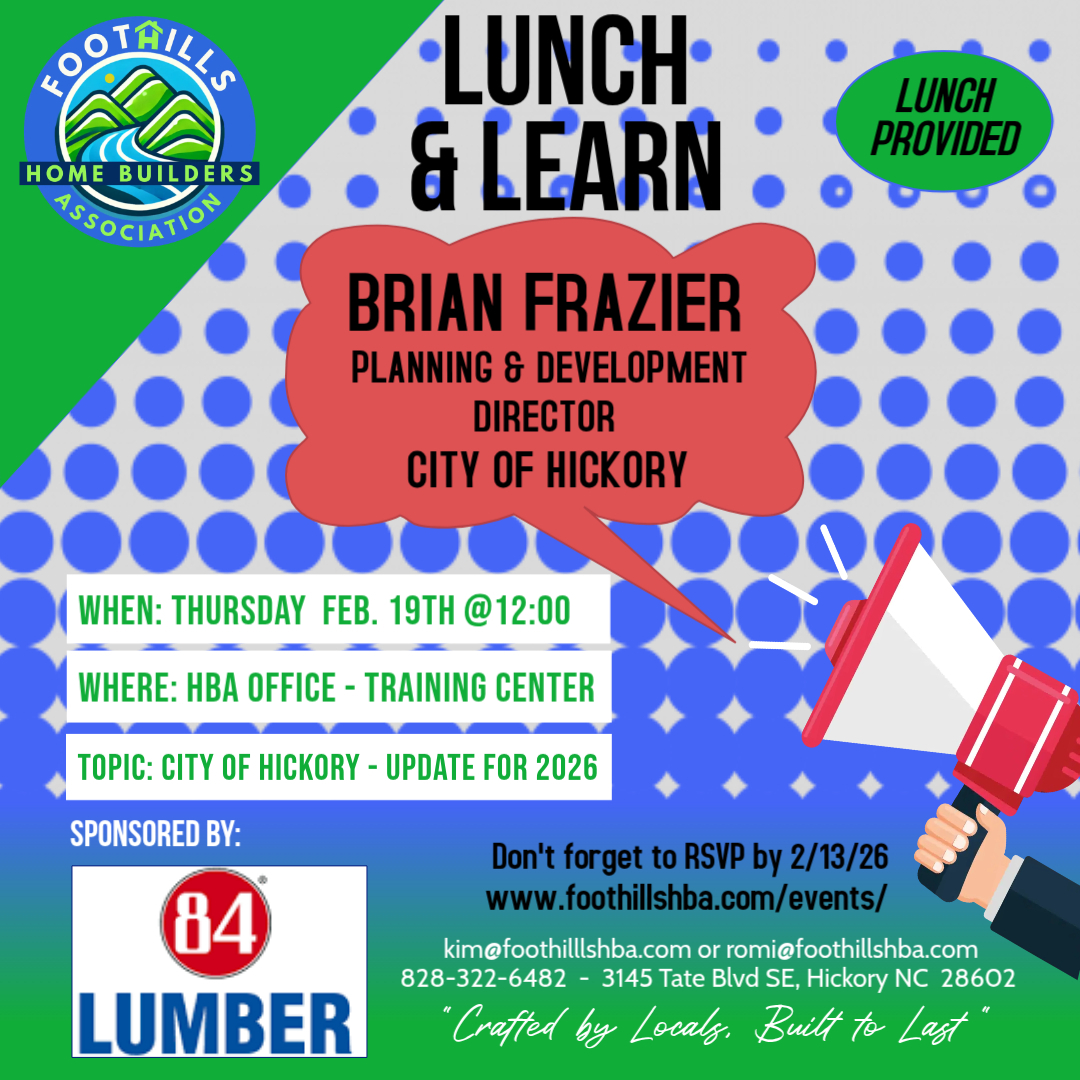 Brian Frazier serves as the Planning & Development Director for the City of Hickory, where he oversees long-range planning, zoning, land development, and growth management initiatives. With extensive experience guiding public-private collaboration and navigating regulatory processes, Brian brings practical insight into how development moves from concept to approval. He will join the Foothills Home Builders…
